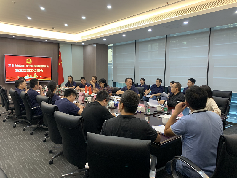 2021年10月19日深圳市博遠(yuǎn)科技創(chuàng)新發(fā)展有限公司第三次職工議事會(huì),在博遠(yuǎn)集團(tuán)會(huì)議室順利召開,此次參會(huì)人員有博遠(yuǎn)集團(tuán)董事長兼總經(jīng)理劉劍祥、行政方理事長唐伍紅;工會(huì)方理事長戴金燕(主席)、秘書長薛穎文(副主席);常務(wù)理事張娥、曾凱旋、劉才芳;特約理事王漠、李劍鋒以及企業(yè)職工代表們。同時(shí),此次會(huì)議也邀請區(qū)總工會(huì)副主席傅承均、區(qū)總組建部、龍城街道工會(huì)副主席陳文敏、街道黨委成員班子等各位領(lǐng)導(dǎo)蒞臨指導(dǎo)議事會(huì)。